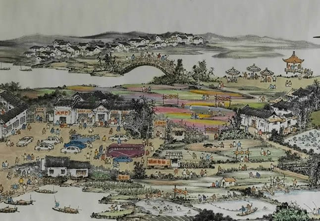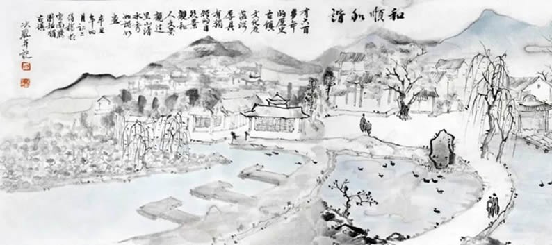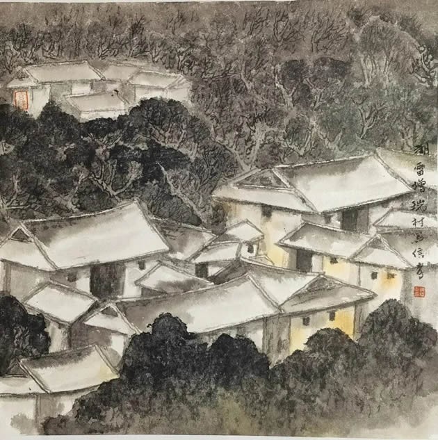 且不说声名远播的锵哥的艺术成就,时至今日,其余六位乡里从艺几十年,得到锵哥的言传身教,加上自己的勤奋研习,画艺大有进步。何次联注重笔墨的意趣,恰到好处地安排虚实,适度的肌理运用更使画面耐人寻味,色彩的使用日臻完美,自成一种恬静优雅的风格。陈信孝一改传统技法,强调画面的构成与装饰效果,不厌其烦地用线条和色块去营造一方天地,巨幅画面充满张力和霸气,多种题材的选择表达了他锐意进取的决心。罗礼文笔墨功力深厚,眼界开阔,画面虚实得体,构图精妙,作品常有让人耳目一新的感觉,并有画坛“快枪手”之美誉。崔勇强聪慧过人,善于吸收传统技法的精髓,功底扎实,画面苍润之中透着秀气,在工意结合中走出一条新路。崔勇强博学多才,在多个领域均有建树。陈年发追寻高古的意境一直不变,他的作品以小见大,以简胜繁,强调传统,画面耐看。张明基凭借其泥水佬的经历,以理工男的缜密思维,一意孤行地用写实的手法表现水乡风情,逐渐形成了自己的风格。
