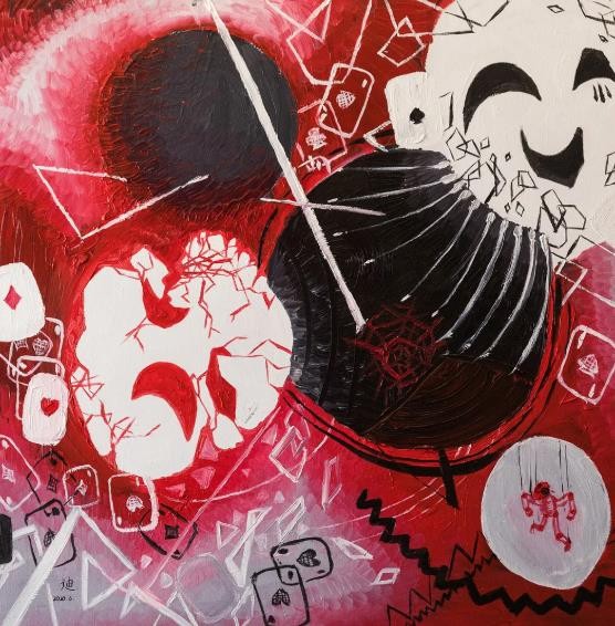 “第一次见伟迪和他的画作是在五年多前,稚嫩的线条,各类生动的人物形象、形形色色的图案出自一位刚进入二年级的孩子之手。”8岁时,因对色彩的感觉,以及独特的绘画意境,被李奉明老师赞赏,遂收为弟子至今,主学油画。