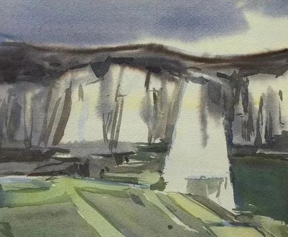 周崇涨教授在中国美术学院任教,他精通版画,涉猎雕塑,多种艺术形式的交错渗透到他的水彩画的创作中,他的创作有着多维的意趣。大胆的色块,静谧的光影与色调,在他的作品中成为主角,与现实的快节奏形成对比,给观者强烈的艺术感染力。