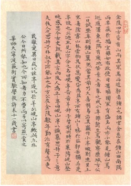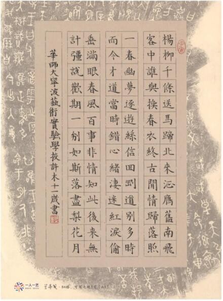 书法艺术是中华民族传统文化的瑰宝,以汉字为重要载体的书法教学不光是一种美的教育,还具有育德,启智,健体,审美的综合效应。《纲要》的颁发让广大师生以及社会认识到书法教育是对中小学生进行书写基本技能的培养和书法欣赏,是传承中华民族优秀文化,培养爱国情怀的重要途径。中国书协主席孙晓云曾在专访中谈及当选感受表示“要把写好中国字写好书法作为中国人的一种时尚!”青少年人才的培育和文化的传承,是每个时代首先必须做好的事情。六一儿童节借此当下校园新少年的书写力量,写好中国字做好中国人!通过这位年仅11岁在小学毕业之际的女孩许木同学用硬笔书法这样更贴近生活的书写方式展现给大家! 许木同学练书法已有四年,一开始先从语文书上规范字入手,之后从她的书写习惯和性格方面中决定在工秀的墓志上手,于是提供了很多隋代墓志的碑帖给她练习与指导,至今她已会完成基本的创作和一些新颖作品纸的装置。坚持临摹董美人墓志铭,旁涉了一些汉隶和唐明小楷,她的笔法和结体都十分讲究,能够做到藏露结合笔触精致,在秀丽笔中老成端庄,在中性笔中清新爽利,在钢笔中灵动疏朗!且在全国各大展赛中关注到许多优秀创作,从中得到诸多感悟。接着自己不断地获得区里省里乃至全国的最高奖之后得到了所有老师们的鼓励,使她信心倍增,对书法字里行间的热情越来越高。 现在的孩子们学习生活节奏都很快,包括许木在繁重的学业之余能够抓住缝隙时间在绘画、钢琴和书法上仍取得丰厚的成绩实属不易!此次展览希望她这份安静的书写力量能够感染到更多同学朋友!一起把“汉字之美”展现给更多的人!