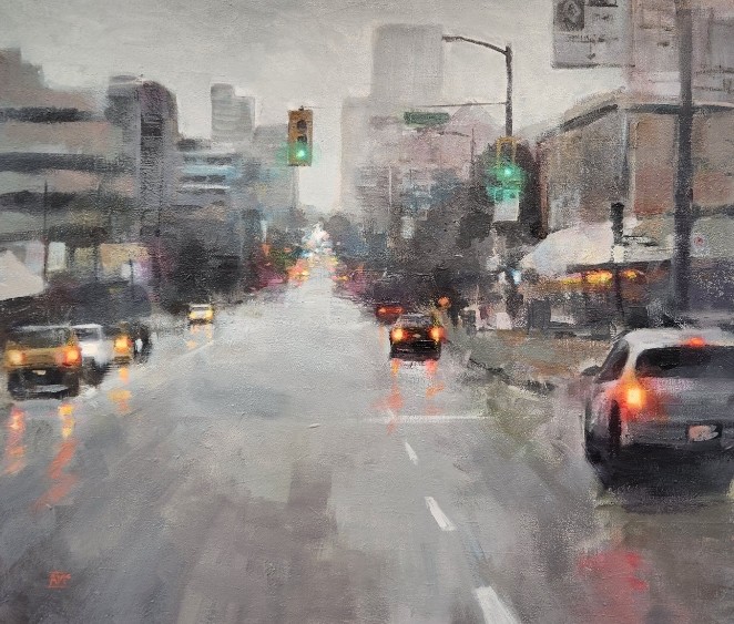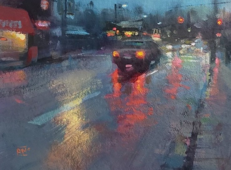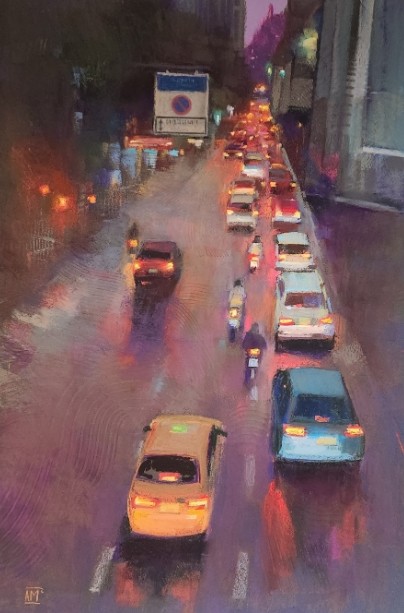 安德鲁自2016年第二届中国(苏州)国际粉画双年展与中国结缘,已先后多次来苏州参与艺术交流活动,今年夏天他首场个展将在金鸡湖畔粉画艺术博物馆举办。他喜欢描绘雨天的城市风光,这与他从小生活、热爱的环境有关。