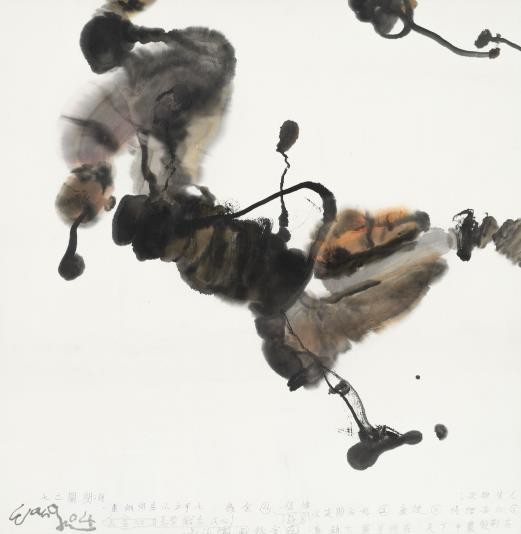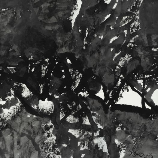作为“斑点派”(发展于战后欧洲的非几何抽象风格)的先驱,吉莲·艾尔斯受美国抽象表现主义影响,以抒情多变的行动绘画风格创作。相对艾尔斯画作中将大自然当作颜料,付诸一生激情的热烈、奔放;谭平的绘画则更为内敛自持,由“细胞”扩散开来的线条,一笔一划镌刻着时间的痕迹,至简至纯却有强大的张力。而王川的水墨如书法抒写的恣情纵意,每一处落墨的浓淡渲染与蜿蜒纠缠,带有对艺术本质与人生哲学的深度考量。