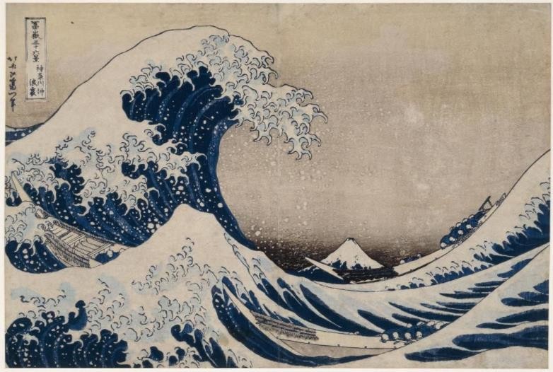 除了原始的毛笔画外,展览还展示了北斋的杰作《巨浪》,以及进一步了解他的工作实践的物品,并展示了他创作木版画的复杂过程。