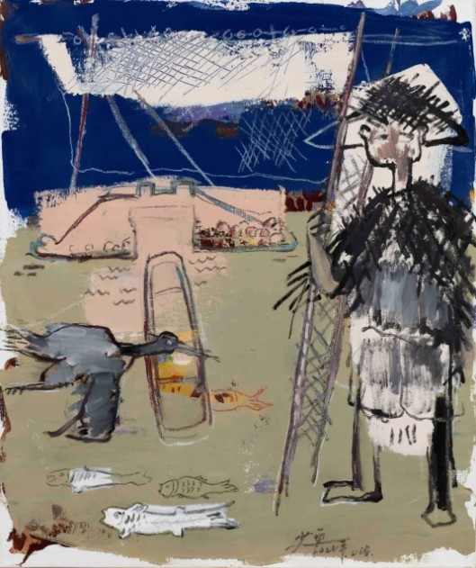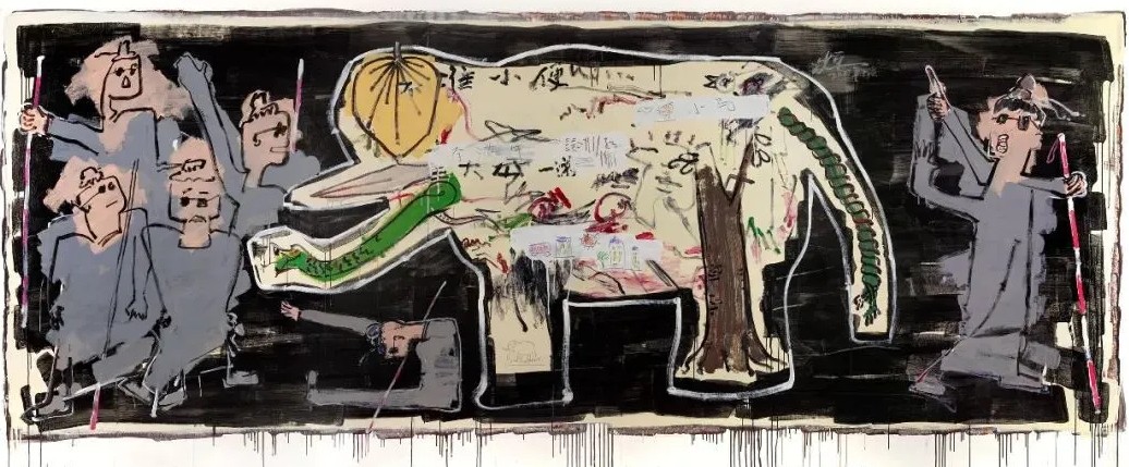 施少平的新作中,运用了“书写”和“涂绘”两种形式的文本。其中,一种是书写出的图景,而另一种则是围绕“标签”构建的故事和寓言。这两种表现通常采用回忆的方式,成为了”涂谱 “的基本架构,并且都建立在“道德生涯”或“超级英雄”人物的叙述上。这样的叙述方式可以拟定为“标签”,形成一种书写式的、无边界感的涂谱展现。它不像传统的图画或文字被限制在边界内,而是通过交织和重叠的标签、符号和图像来展现人物的内心世界和复杂的情感状态,也能让观众参与到故事中来,通过自己的想象和理解来填补展现中的空缺。涂谱的某些内涵所带来的羞耻感被转化为对文化的自豪和认同,提供了关于诸多记忆的丰富材料。施少平在这些作品中参与且实践了有关记忆的探讨,以争取认可其文化和生命历程的价值。同时,这些叙述也提供了涂谱所需的情节和角色,被重新提及的人物故事创建了一个无尽的虚想空间,在自我的语境框架内被再次强调。施少平的观察和积极视角所呈现出的记忆,不是浪漫和理想化的,而是对充满存在主义困境的反思性叙述和戏剧性表演的记录。这也是对绘画艺术自身某些理论的批判性思考。他的作品理念成为了给参与者提供的见解,即如何在社会生活和时间流逝中穿越边界。