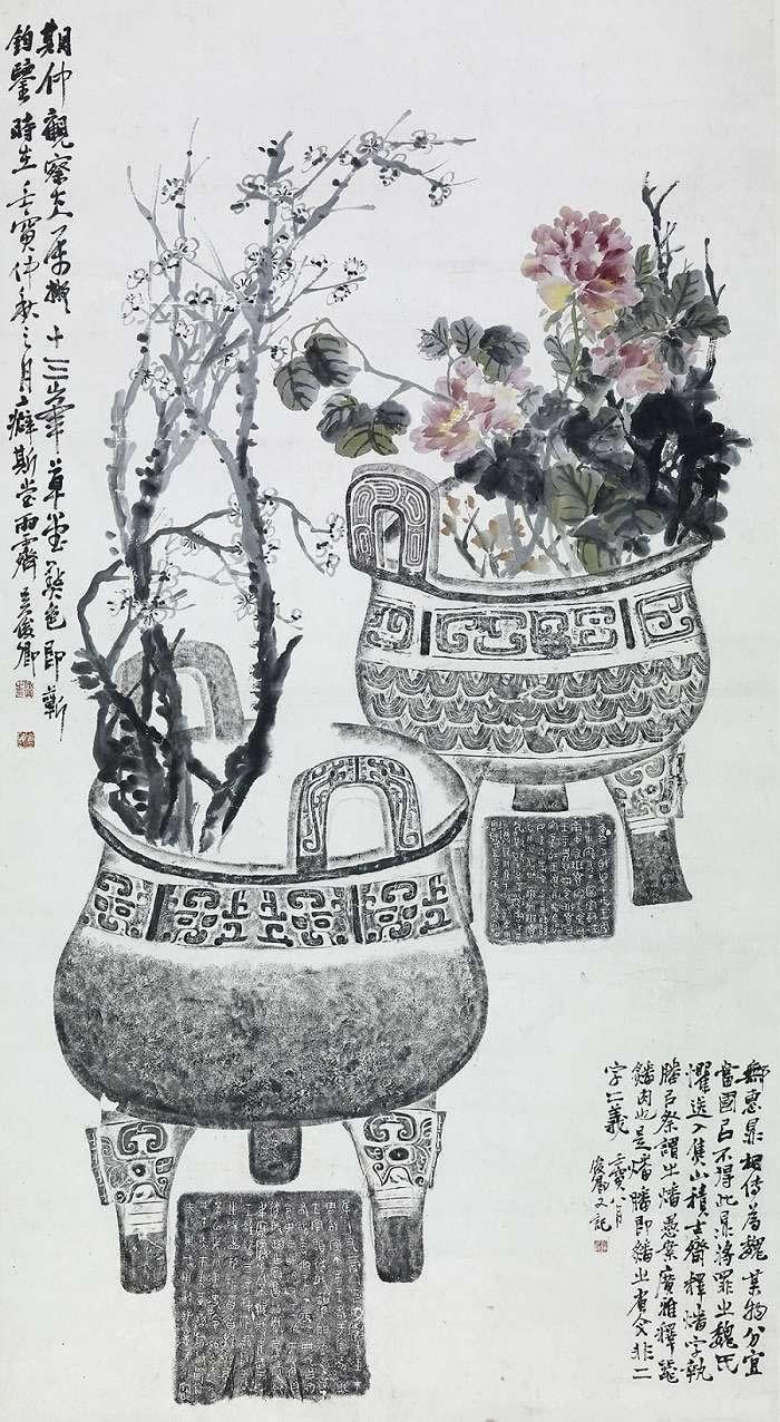 吴昌硕是西泠印社的第一任社长,海上画派的代表人物,精通诗、书、画、印。他以书画创作为生,绘制了许多花卉题材作品,这些画作贴近市民,迎合市场,将文人雅趣与世俗审美结合。