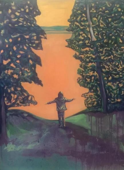 从杭州到柏林,随着地理空间变迁与不同环境文化的冲击,纵观阿达2018年后的作品,大眼睛人物的元素在他的笔下逐渐减少,阿达的重心转向了更大的场景,画里的天地变得更加开阔,人物在画中所占的面积大幅缩小。“人变小了,心更自由了。”