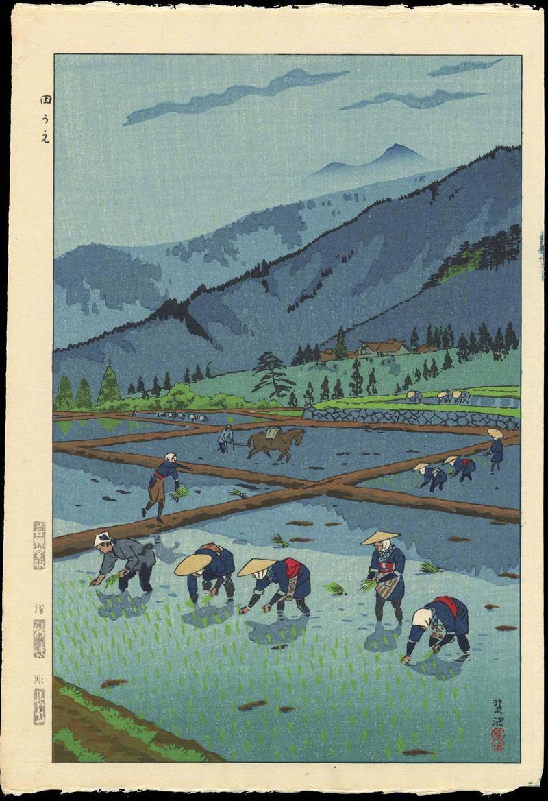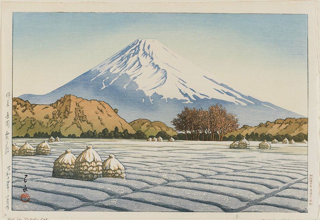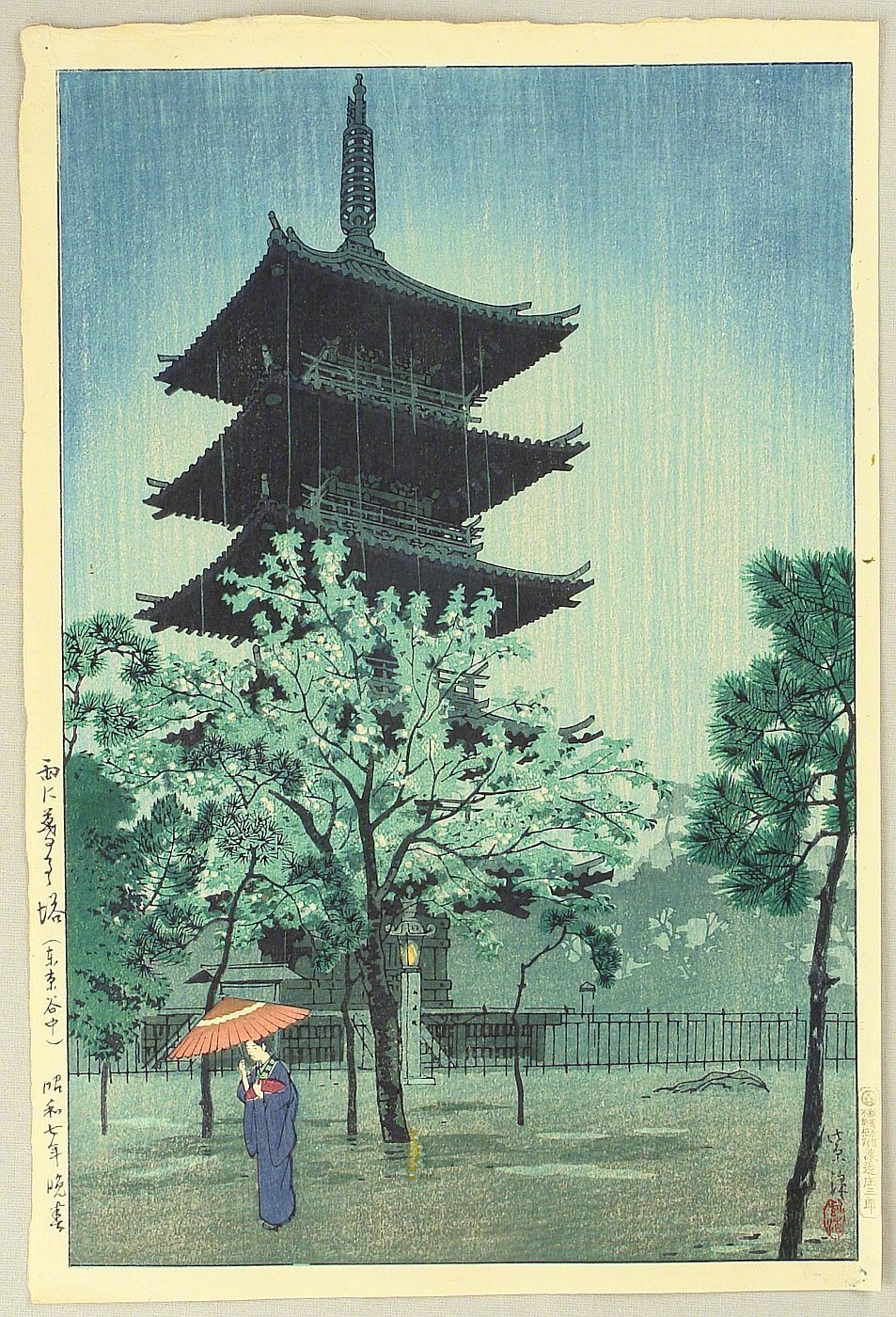 笠松紫浪出生于东京,13岁开始学版画。直到20世纪40年代,他已经创作了50张版画,在1923年大地震中他丢失了原版。在50年代开始,他用新版画风格来描绘传统题材,创作了大量作品,雕刻、印刷和出版都由自己亲自完成。他擅长表现夜、雨和雪景。