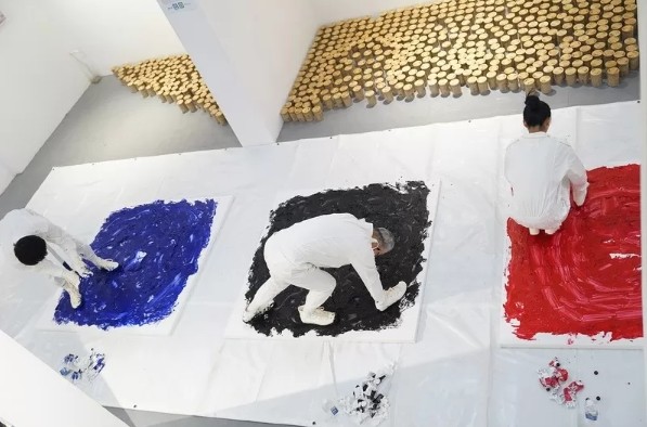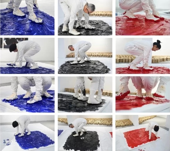 1月10日,一个名为《爬行动物》的实验艺术展在上海M50开幕,开幕式现场,艺术家杨烨炘邀请一男一女,将双手双脚都穿上鞋子,用四只脚作画。三人在沾满颜料的油画板上不断爬行,反复转圈,一直到精疲力尽,画板上留下了艺术家爬行的痕迹。至此,“爬行动物”行动油画宣告完成。