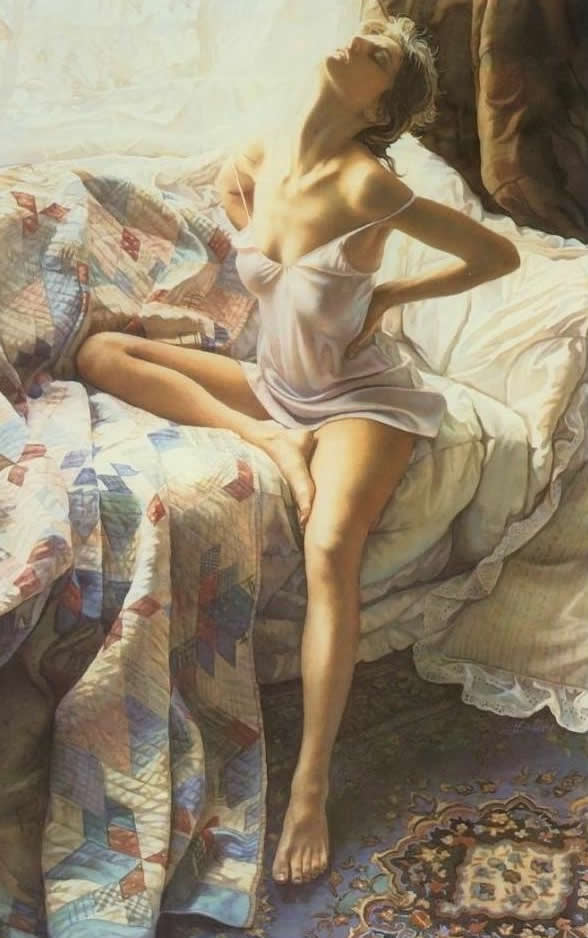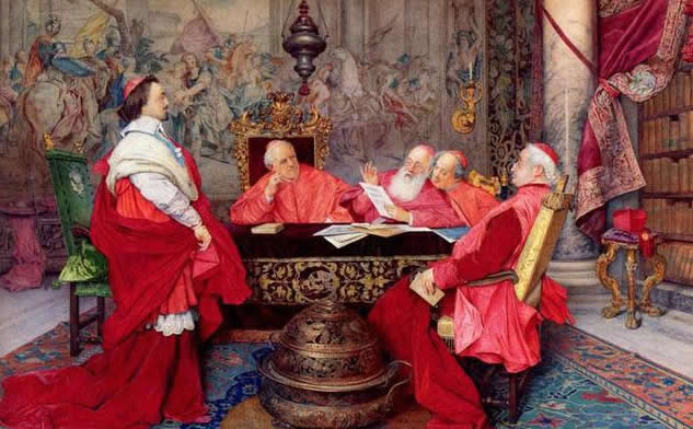 我们不看人物,先看后面那幅壁画,显然是宗教题材,不管它。再看地下的大地毯,是值钱货!其实,最有看头的有三件东西:右侧的深紫红色天鹅绒幕布和紧挨其旁的光滑的大理石柱子,及前下方正中的那尊大铜薰炉。画这三件东西,画家使出了混身解数。你可以伸手去摸摸光滑的大理石柱子,感受一下毛绒绒的深紫红色天鹅绒幕布。看一看这尊大铜薰炉吧:很重,一个人搬走不容易。有一点点铜锈。是紫铜。高光有一点刺眼。很怪呀!画家把人物做陪衬,而把一些器物做主角,可谓匠心独具。我们看画家的生卒年,这三件东西已经看了至少七、八十年了。再看七、八十年没问题。因为太有看头了!